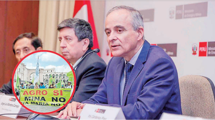 Pese a que durante la campaña electoral la presidenta Dina Boluarte firmó un acta asegurando que el proyecto minero no se llevaría a cabo, el ministro de Energía y Minas, Jorge Montero, anunció que la construcción del proyecto Tía María, a cargo de Southern Peru Copper Corporation, comenzará en la segunda mitad de este año. La declaración fue realizada durante el evento Jueves Minero, organizado por el Instituto de Ingenieros de Minas del Perú (IIMP).