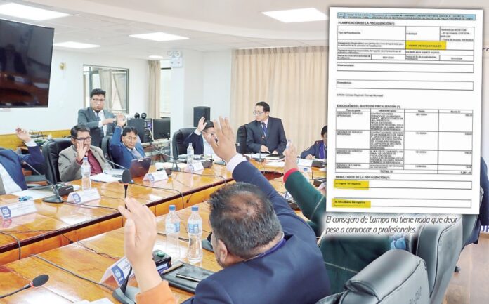En el caso de Wilber Aquice Aquice, consejero por la provincia de Lampa, hay una situación llamativa. Para la labor de fiscalización de cada uno de los proyectos, contempla la contratación de un abogado y un ingeniero civil, además del alquiler de una camioneta y materiales de escritorio por un monto que supera los S/ 2 mil. Sin embargo, sus informes están en blanco, es decir no detalla absolutamente nada de lo que hace.