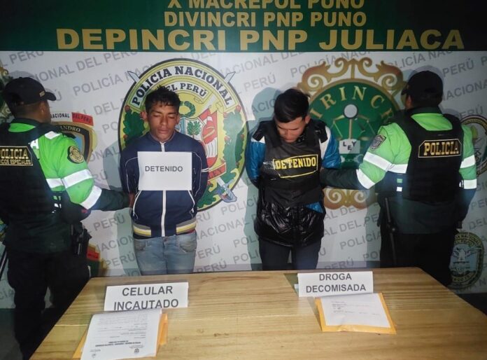 La Policía Nacional del Perú (PNP) detuvo a dos ciudadanos venezolanos, identificados como José Roberto Zambrano Martínez (23 años) y Efraín Eduardo Penago Viscaya (24 años), por los delitos de tráfico ilícito de drogas y receptación, durante un operativo realizado en el cruce de los jirones Puno e Independencia, en el distrito de Juliaca, provincia de San Román, región Puno.