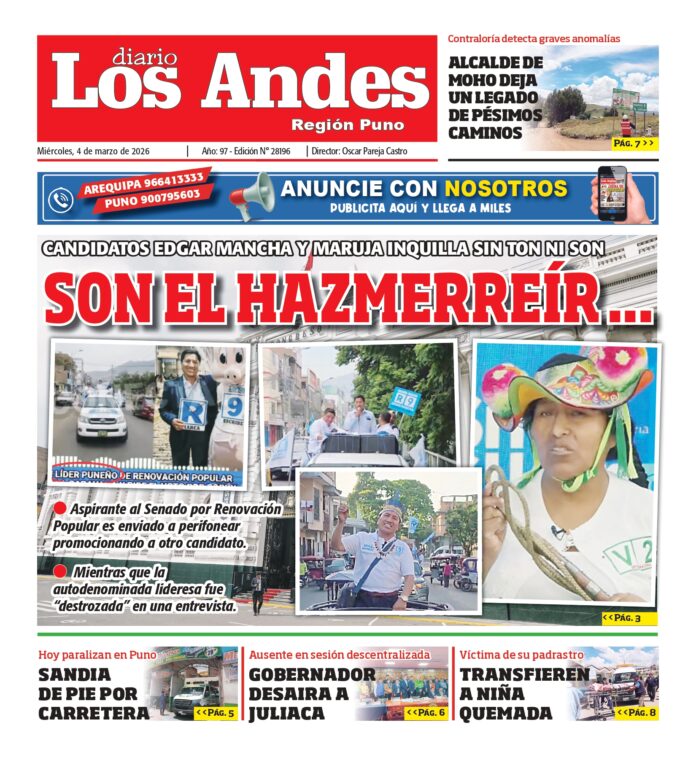Por: Diario los Andes Fecha: marzo 4, 2026 DIARIO DIGITAL DIARIO LOS ANDES PUNO: 04/03/2026 Vistas: 391 Artículo anteriorDIARIO LOS ANDES AREQUIPA: 04/03/2026Artículo siguienteDIARIO LOS ANDES AREQUIPA: 05/03/2026 Diario los Andes DEJAR UNA RESPUESTA Cancelar respuesta Comentario: Por favor, introduzca su comentario Nombre:* Introduzca aquí su nombre Correo electrónico:* Ha introducido una dirección de correo electrónico incorrecta Introduzca aquí su dirección de correo electrónico Página web: Guarda mi nombre, correo electrónico y sitio web en este navegador para la próxima vez que comente. Compartir post: FacebookTwitterPinterestWhatsApp Suscríbete Quiero entrar He leído y acepto la Política de Privacidad. Populares Semanario Los Andes 09/03/2026 DIARIO LOS ANDES PUNO: 08/03/2026 DIARIO LOS ANDES AREQUIPA: 08/03/2026 Pescadores artesanales advierten paro indefinido contra Produce Salvataje rescata a 259 bañistas en playas de Arequipa Más vistosMás vistos Semanario Los Andes 09/03/2026 Diario los Andes - marzo 8, 2026 DIARIO LOS ANDES PUNO: 08/03/2026 Diario los Andes - marzo 8, 2026 DIARIO LOS ANDES AREQUIPA: 08/03/2026 Diario los Andes - marzo 8, 2026 Pescadores artesanales advierten paro indefinido contra Produce Diario los Andes - marzo 7, 2026 Redacción: Jessimiel Rosas Pescadores artesanales de la Macrosur advirtieron que...