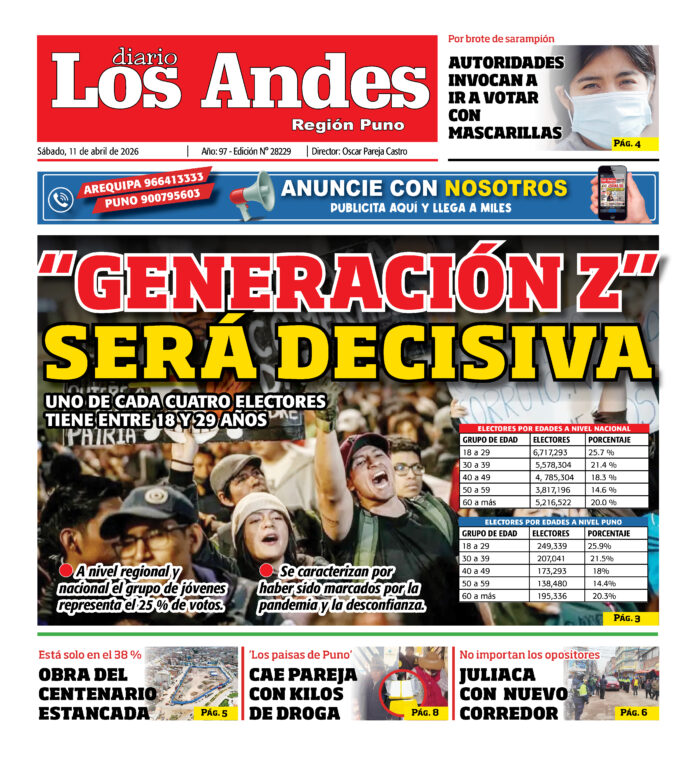 Por: admingeneral Fecha: abril 10, 2026 DIARIO DIGITAL DIARIO LOS ANDES PUNO: 11/04/2026 Vistas: 8 Artículo anteriorDIARIO LOS ANDES AREQUIPA: 10/04/2026Artículo siguienteDIARIO LOS ANDES AREQUIPA: 11/04/2026 admingeneralhttp://adminlosandes DEJAR UNA RESPUESTA Cancelar respuesta Comentario: Por favor, introduzca su comentario Nombre:* Introduzca aquí su nombre Correo electrónico:* Ha introducido una dirección de correo electrónico incorrecta Introduzca aquí su dirección de correo electrónico Página web: Guarda mi nombre, correo electrónico y sitio web en este navegador para la próxima vez que comente. Compartir post: FacebookTwitterPinterestWhatsApp Suscríbete Quiero entrar He leído y acepto la Política de Privacidad. Populares DIARIO LOS ANDES AREQUIPA: 11/04/2026 Miembros de mesa deberán acudir a los locales de votación a las 6:00 a.m. Arequipa: Serenos son amenazados con piedras por limpiaparabrisas en el Cercado Inicia proceso de caracterización vehicular para transporte urbano en Puno Detectan deficiencias en operativo a restaurantes en Sandia Más vistosMás vistos DIARIO LOS ANDES AREQUIPA: 11/04/2026 admingeneral - abril 10, 2026 Miembros de mesa deberán acudir a los locales de votación a las 6:00 a.m. admineditor - abril 10, 2026 La Oficina Nacional de Procesos Electorales (ONPE) informó... Arequipa: Serenos son amenazados con piedras por limpiaparabrisas en el Cercado admineditor - abril 10, 2026 Redacción: Jessimiel Rosas Agentes de Seguridad Ciudadana de la Municipalidad... Inicia proceso de caracterización vehicular para transporte urbano en Puno admineditor - abril 10, 2026 La comuna provincial de Puno, a través de la...
