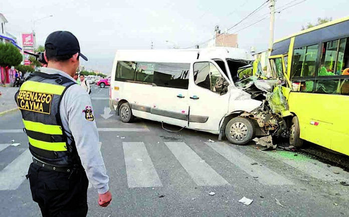 Al menos doce personas resultaron heridas tras el choque frontal entre un vehículo miniván de placa V0S-959 y una cúster de transporte público de matrícula V9P-778.