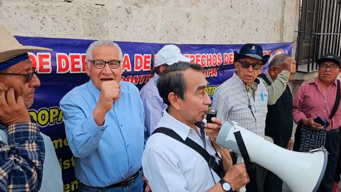 Un grupo de docentes jubilados salió a las calles del centro de Arequipa para exigir un aumento de pensión justa. Actualmente perciben entre S/ 450 y S/ 893, montos que para ellos resultan insuficientes para cubrir una canasta básica familiar.