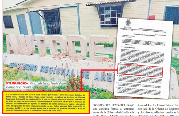 En consecuencia, dispuso “no haber lugar a formalizar ni continuar con la investigación preparatoria” contra Tohalino Manrique por el presunto delito contra la fe pública, en la modalidad de falsedad, en agravio del Estado y del Gobierno Regional de Arequipa.