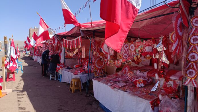 San Román. Los comerciantes de símbolos y adornos patrios reportaron la baja de ventas a unas horas de recordarse el 203 aniversario de la independencia nacional.