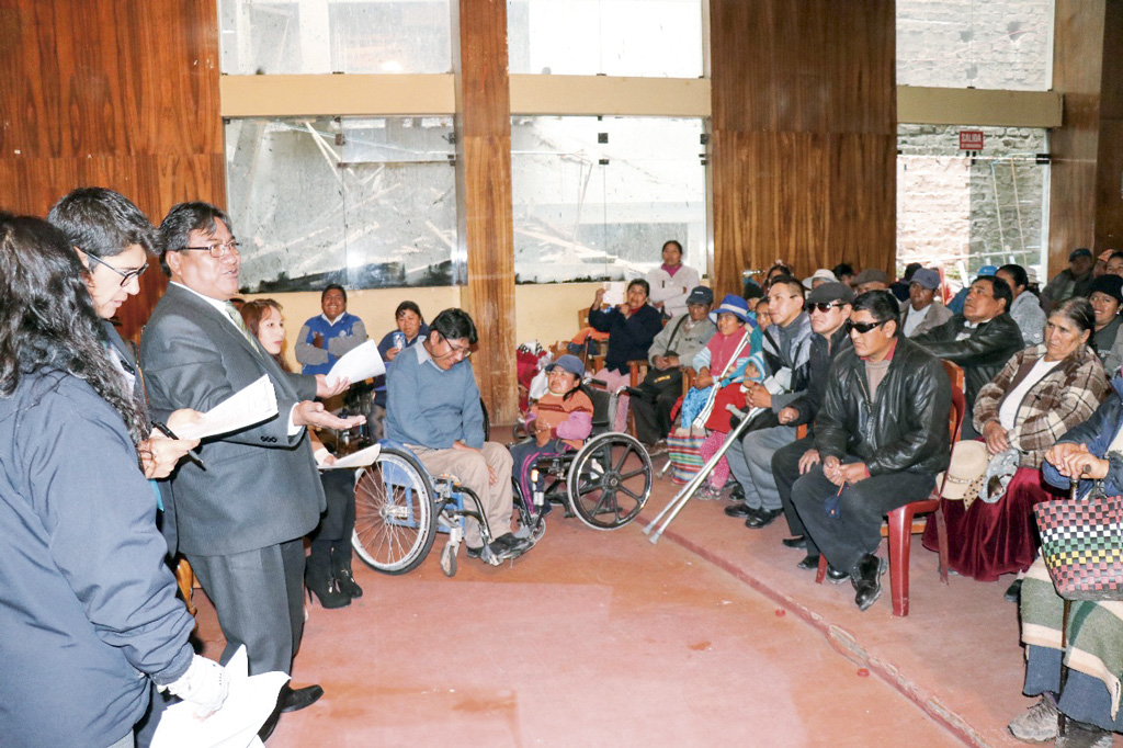 Félix Checa Pari, presidente de la Organización Central de Personas con Discapacidad de la provincia de San Román, manifestó que la mañana de ayer se reunieron con el alcalde de la Municipalidad Provincial, David Sucacahua Yucra, haciéndole conocer su pliego petitorio.