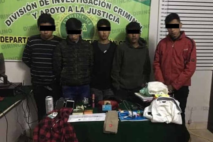 Efectivos de la policía nacional capturaron a cinco menores de edad que presuntamente conformaban una banda delincuencial dedicada a asaltar a personas ebrias. Los adolescentes, para cometer sus fechorías, utilizaban un cuchillo.