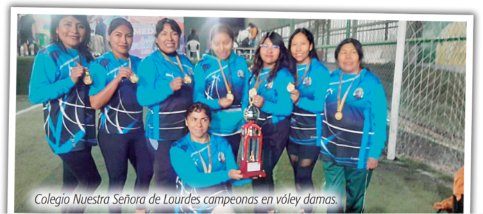 En vóley damas, el Colegio Nuestra Señora de Lourdes Circa derrotó por 2-0 al Colegio Jorge Basadre y se llevó la corona. El tercer lugar le correspondió al Colegio Paola Frassinetti tras vencer 2-1 al Colegio Neptalí Valderrama.