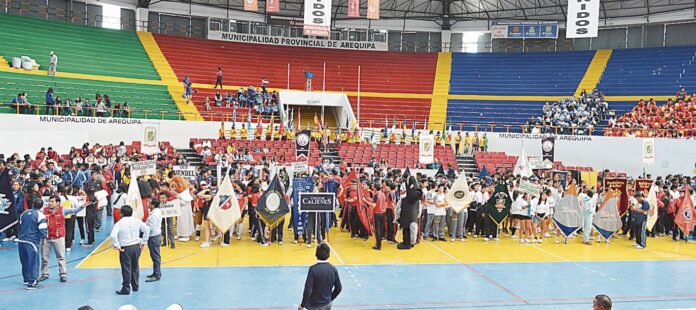 Arequipa. El coliseo Arequipa fue escenario de la inauguración de los juegos deportivos escolares nacionales, alrededor de 120 instituciones educativas desfilaron con sus delegaciones de diferentes disciplinas.