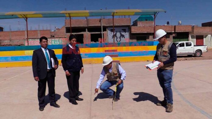 La fiscalía especializada en Delitos de Corrupción inspeccionó hoy 5 plataformas deportivas construidas durante la gestión 2017-2018 en el distrito de San Miguel (San Román).