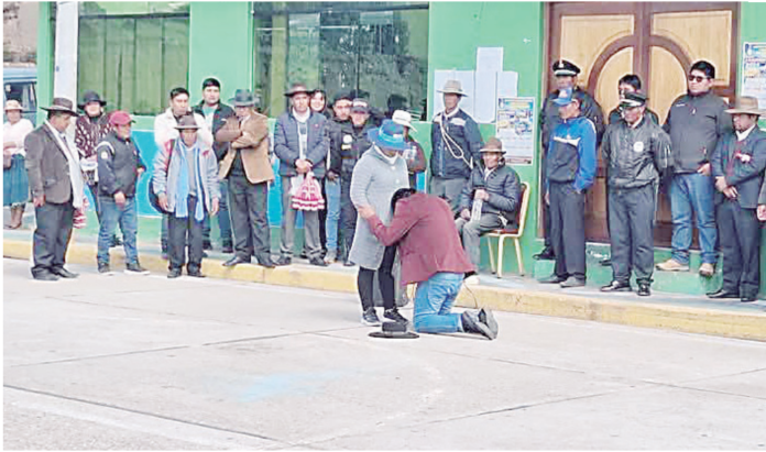 Magno Tito Apaza Mamani, alcalde del distrito de Huacullani (Chucuito), pidió perdón de rodillas a su pueblo y a su esposa.