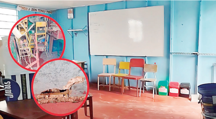 Explicó que las aulas fueron habilitadas con faenas de los padres de familia y materiales reciclados, pero carecen de columnas, lo que representa un riesgo.