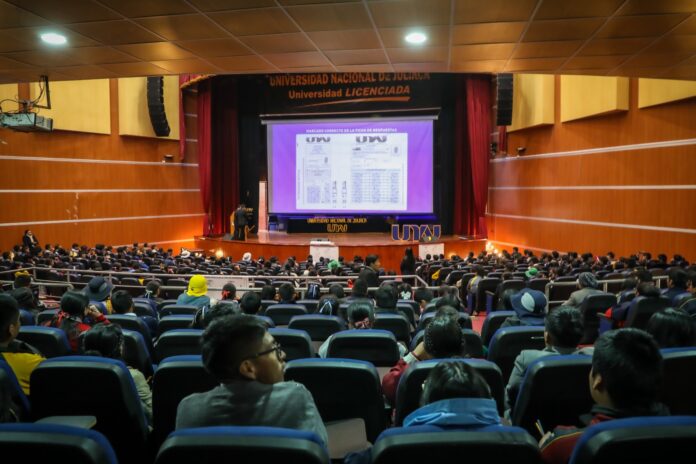 Los participantes rindieron pruebas de conocimientos en física, química, biología y matemáticas en el Auditorio Magno del pabellón académico de la UNAJ.