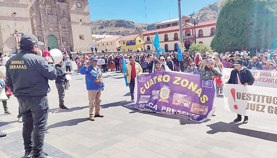 Alrededor de un centenar de ciudadanos juliaqueños se congregaron en el parque Mariátegui para luego marchar rumbo a la sede principal de la Corte Superior de Justicia de Puno exigiendo la salida del juez Guido Chavarría Tisnado.