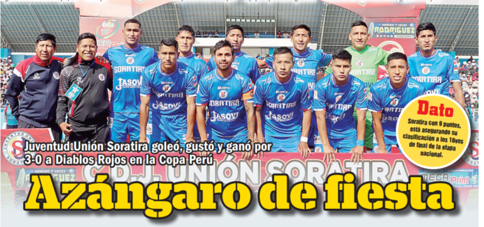 Puno. Juventud Unión Soratira quiere llegar como sea a la Liga 2. Y tiene como conseguirlo ya que, el último jueves, goleó 3-0 a Diablos Rojos, en la tercera fecha de la etapa nacional de la Copa Perú.