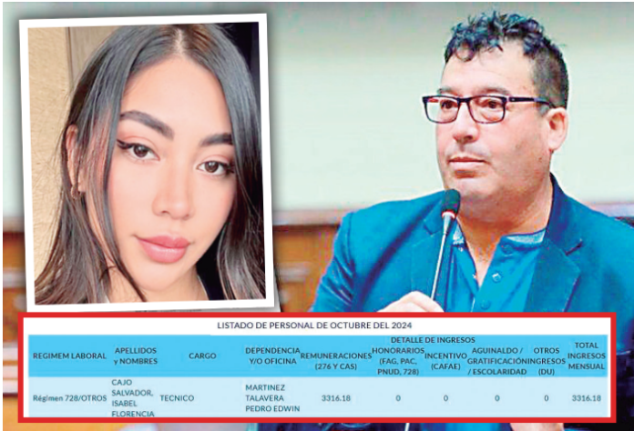 Polémica ha causado la contratación de Isabel Cajo Salvador en el despacho del congresista, Edwin Martínez, quien sin ser bachiller gana un sueldo superior a los 7 mil soles. La mujer tenía su cuenta “OnlyFans”, así lo reveló el Semanario Hildebrandt en sus Trece.
