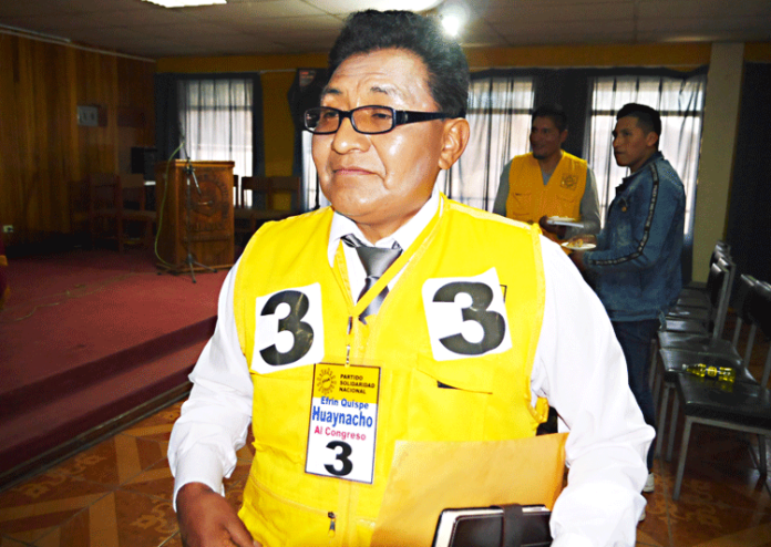 Efrin Quispe Huaynacho va como invitado en el partido del sol; según dijo, no está de acuerdo en que los exfujimoristas postulen por este partido, como sucede en Lima.