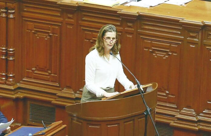 La ministra intervino en la sesión del pleno del Congreso convocada para decidir el voto de confianza al Gabinete Ministerial que preside Gustavo Adrianzén.