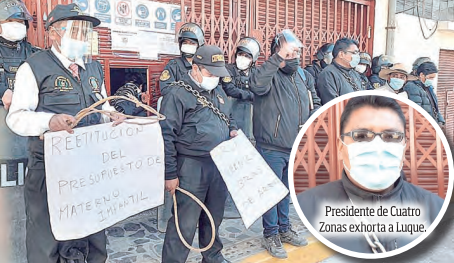 Asimismo, reveló que tienen una plataforma de 29 pedidos al GRP, y que esperan una explicación sobre los recursos del hospital Materno Infantil de Juliaca que fueron transferidos a Zepita. En caso de que Luque no asista, acotó, emprenderían un paro preventivo de 48 horas.