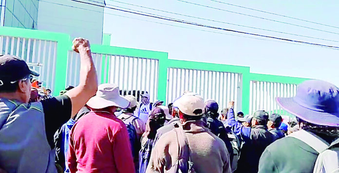Yura. Un grupo de obreros de construcción civil llegarón ayer hasta el municipio distrital e impidierón el ingreso de los trabajadores.