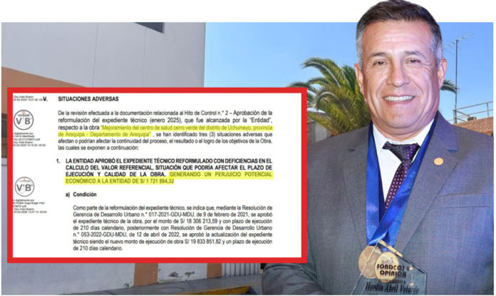 La tan esperada construcción del Centro de Salud Cerro Verde continúa presentando problemas. Esta vez, la Contraloría, a través del Informe N° 001-2025-OCI/1315-SCC, ha identificado diversas irregularidades en la reformulación del expediente técnico, las cuales se dieron durante la gestión del alcalde de Uchumayo, Hardin Abril Velarde.