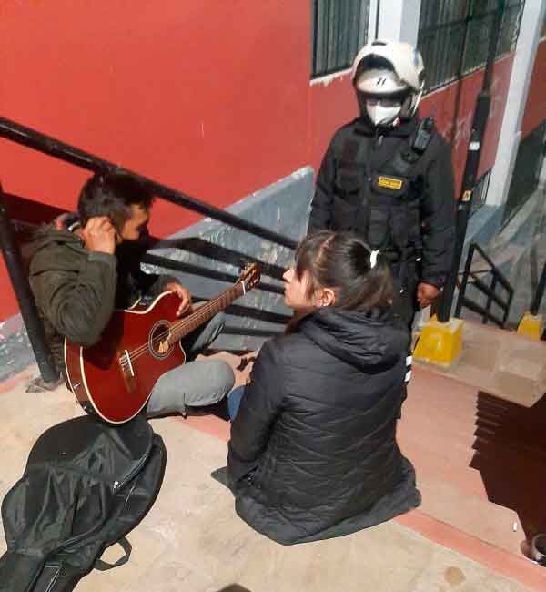 Todo ocurrió el último martes, al promediar las 23:00 horas. Los agentes que realizaban un patrullaje de rutina por las inmediaciones del jirón Pardo hallaron a dos jóvenes cantando, uno de ellos con una guitarra.