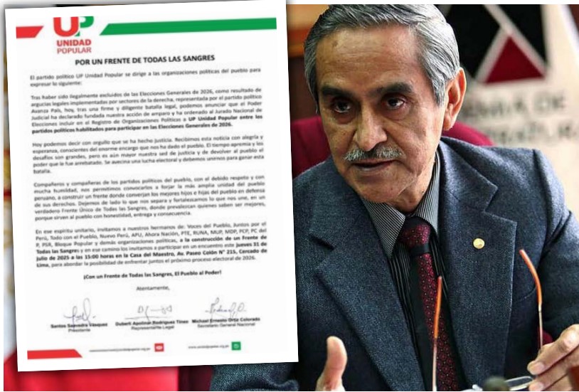 El partido político Unidad Popular, liderado por Santos Saavedra e integrado por figuras como el expresidente del Poder Judicial, Duberlí Rodríguez, ha sido oficialmente habilitado para participar en las Elecciones Generales del 2026.