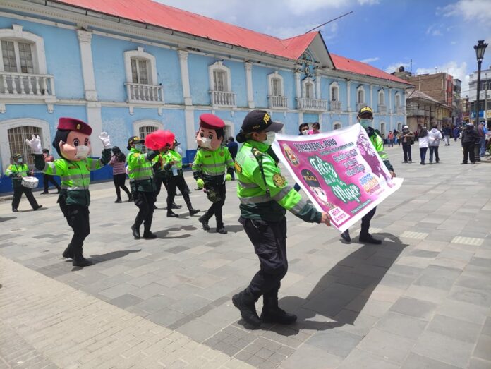 Puno. La división de policías comunitarias de la ciudad de Puno, junto a su banda musical, se movilizó por diferentes calles, a fin de conmemorar el Día Internacional de la Mujer.