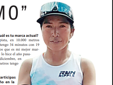 En pista, en 10.000 metros planos tengo 34 minutos con 19 segundos que es mi mejor marca , que lo hice el año pasado en diciembre, en 5.000 metros tengo 16,44.