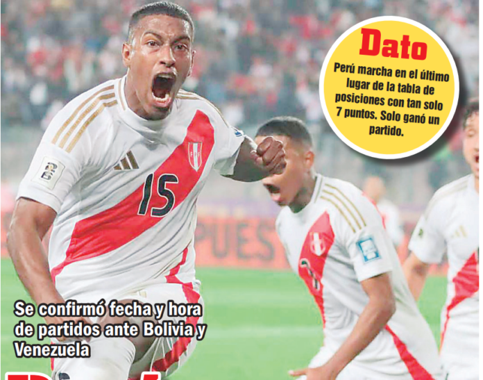Lima. La selección peruana enfrentará a Bolivia y Venezuela, el jueves 20 y martes 25 de marzo, respectivamente, así lo confirmó la Conmebol tras dar a conocer la programación de las jornadas 13 y 14 de las Eliminatorias al Mundial 2026.