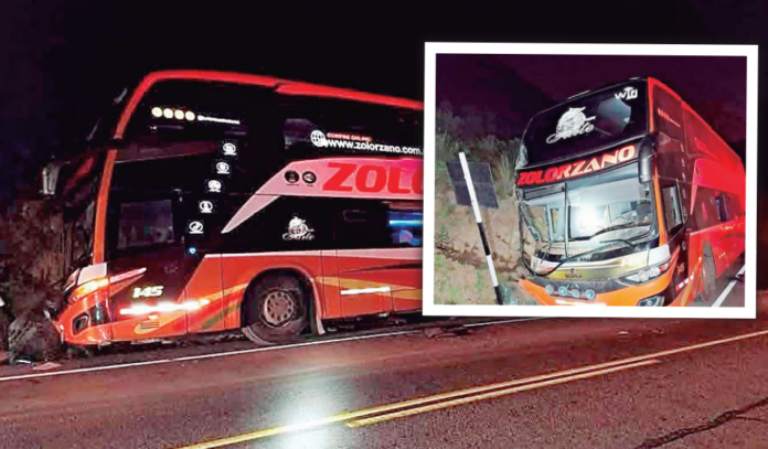 En el referido lugar, el conductor del bus, Tonny Humberto Gómez Flores (42), perdió el control de la unidad y terminó fuera de la pista asfáltica impactando contra el cerro.