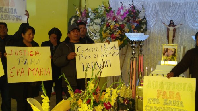 Tras el asesinato de Eva María Carcahusto Huancapaza (24), sus familiares y amigos pidieron justicia y cadena perpetua para el asesino confeso, Darwin Mescco Mamani (25), a cuya vivienda acudieron, rompiendo las ventanas con piedras y pintando la palabra “asesino” en los muros.