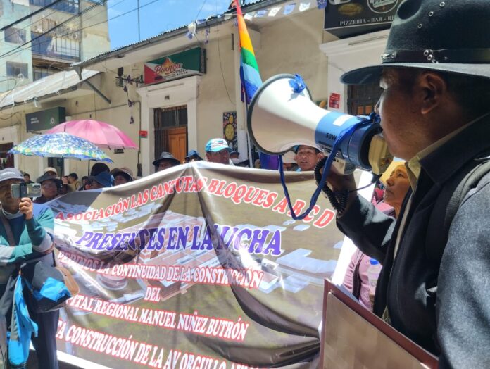 Un grupo de vecinos de la Asociación de Vivienda Las Cantutas, del centro poblado Jayllihuaya, marchó por las calles céntricas de la ciudad de Puno y realizó un plantón exigiendo la construcción del hospital regional Manuel Núñez Butrón en su jurisdicción.