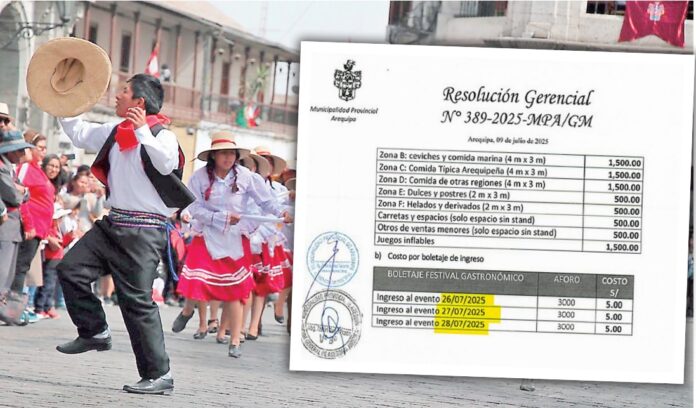 Pese a ello, el 29 de julio se habrían vendido entradas, presuntamente administradas por el Sindicato de Músicos de Arequipa, presidido por Marcos Quispe. No existiría convenio aprobado por el concejo municipal que autorice a dicha organización a cobrar ingresos en un bien del Estado para beneficio de terceros, lo que podría configurar presuntos delitos de peculado de uso o malversación de fondos.