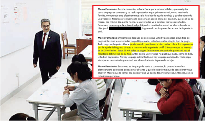 La transacción se concretaría bajo la promesa de que el pago, ascendente a 25,000 soles, se efectuaría únicamente después de que el postulante aparezca en la lista de ingresantes oficiales.