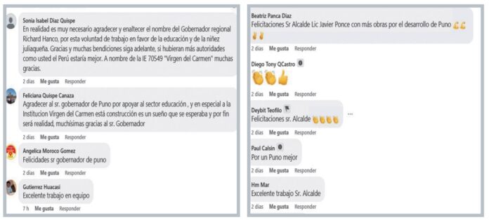 Otra publicación titulada “ Puno, Ilave, Juliaca y Azángaro tendrán gas a domicilio con 302 reacciones y 245 compartidos. “Éxitos Dr. Richard Hancco”, dice uno de los contactos. Cuando se revisa el muero se encuentran que se trata de alguien que comparte constantemente publicaciones del gobierno regional.