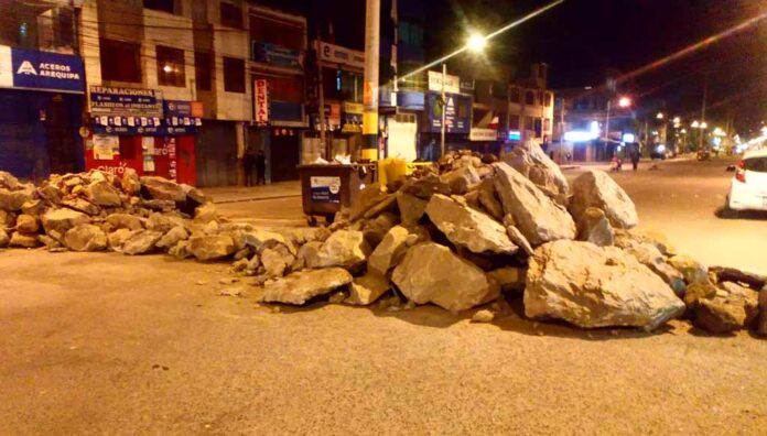 La avenida Simón Bolívar fue bloqueada con piedras y destrozada con maquinaria de la Municipalidad Provincial de Puno, pese a que el alcalde Martín Ticona autorizó las actividades de la Feria Sabatina hasta el sábado 03 de agosto, durante su última reunión con los comerciantes que laboran allí.