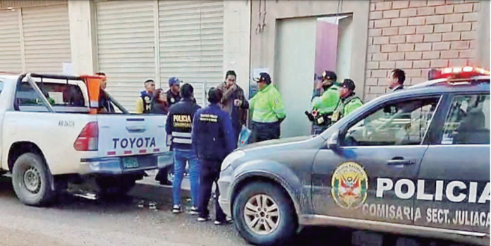 En el ambiente del primer piso, a poca distancia de los dos cuerpos, los efectivos policiales encontraron un envase de detergente, un trapo, un par de guantes de látex y agua enrojecida por la sangre de las víctimas.