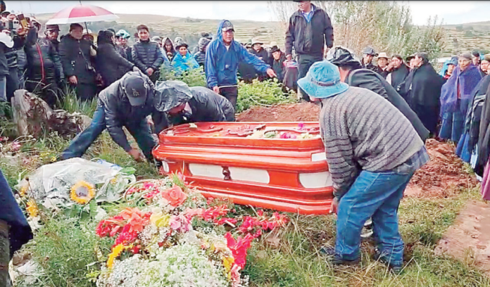 El cortejo fúnebre se trasladó hasta el cementerio Apacheta, ubicado en la comunidad Chucaruyo Ccaje, distrito de Juli, provincia de Chucuito. Allí descansa ahora la mujer que deja en la orfandad a tres menores hijos.
