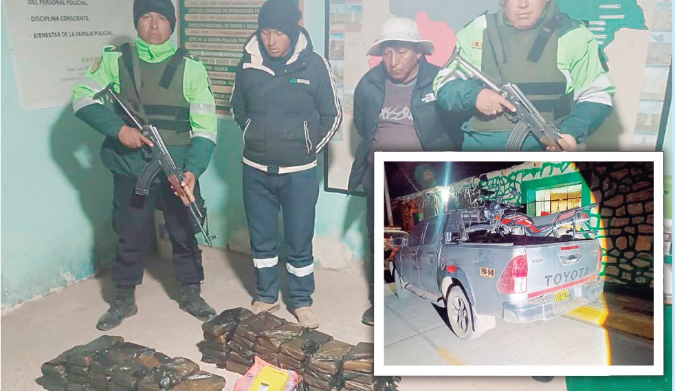 En este lugar, los agentes del orden interceptaron una camioneta en la que se desplazaban Marcelino Mamani M. (49) alias ‘Adolfo’ y Frans Clever Cruz S. (22) alias ‘Caleta’.