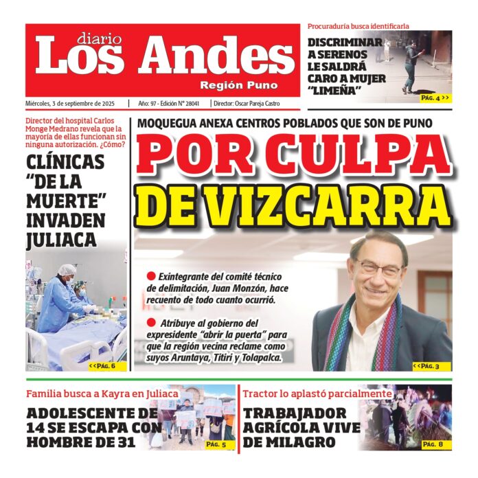 Por: Diario los Andes Fecha: septiembre 3, 2025 DIARIO DIGITAL PUNO: Diario Los Andes 03/09/2025 Vistas: 52 TagsDiario DigitalDiario Los AndesPuno Artículo anteriorAREQUIPA: Diario Los Andes 03/09/2025Artículo siguienteAREQUIPA: Diario Los Andes 04/09/2025 Diario los Andes Compartir post: FacebookTwitterPinterestWhatsApp Suscríbete Quiero entrar He leído y acepto la Política de Privacidad. Populares DIARIO LOS ANDES PUNO: 12/03/2026 DIARIO LOS ANDES AREQUIPA: 12/03/2026 Detectan 80 buses con pasaje elevado en Arequipa Fiscalía descarta desabastecimiento de gas en Socabaya Reparación de ductos de Camisea alcanza 64% Más vistosMás vistos DIARIO LOS ANDES PUNO: 12/03/2026 Diario los Andes - marzo 11, 2026 DIARIO LOS ANDES AREQUIPA: 12/03/2026 Diario los Andes - marzo 11, 2026 Detectan 80 buses con pasaje elevado en Arequipa Diario los Andes - marzo 11, 2026 Redacción: Jessimiel Rosas Inspectores de transporte de la Municipalidad Provincial... Fiscalía descarta desabastecimiento de gas en Socabaya Diario los Andes - marzo 11, 2026 Redacción: Jessimiel Rosas El Ministerio Público descartó el desabastecimiento de...