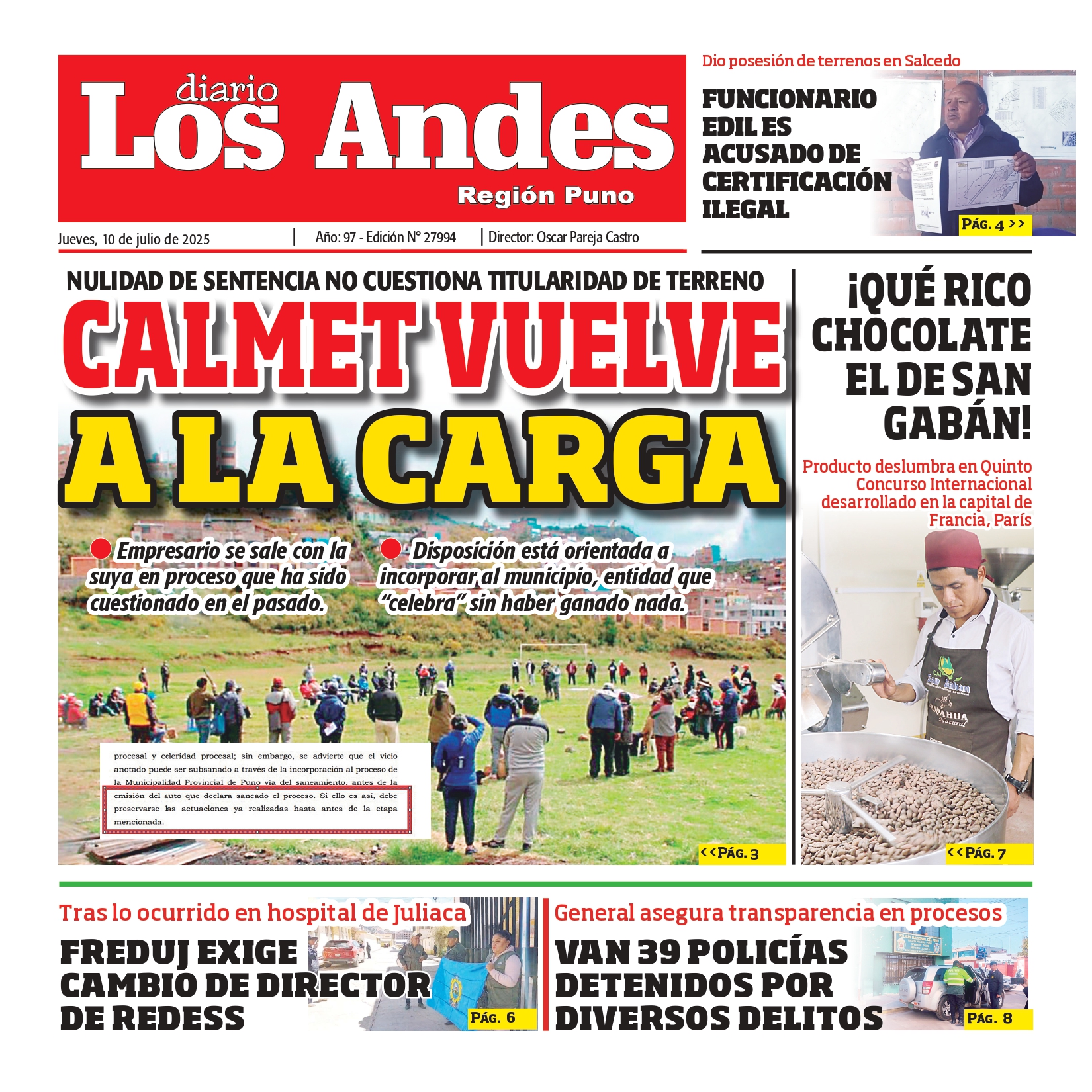 PUNO: Diario los Andes 10/07/2025 Autor de la entrada Por Diario los Andes Fecha de publicación julio 10, 2025 Categorías En DIARIO VIRTUAL Etiquetas Diario Digital, Diario Los Andes, Puno