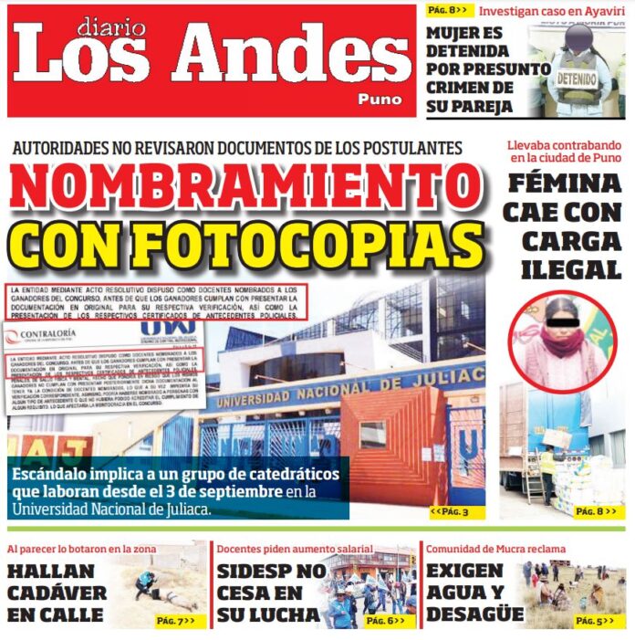 Por: Diario los Andes Fecha: septiembre 10, 2024 DIARIO DIGITAL PUNO: Diario Los Andes 10/09/2024 Vistas: 7 Artículo anteriorAREQUIPA: Diario Los Andes 10/09/2024Artículo siguienteAREQUIPA: Diario Los Andes 11/09/2024 Diario los Andes Compartir post: FacebookTwitterPinterestWhatsApp Suscríbete Quiero entrar He leído y acepto la Política de Privacidad. Populares DIARIO LOS ANDES AREQUIPA: 17/03/2026 DIARIO LOS ANDES PUNO: 17/03/2026 Rescatan a cría de oso andino que vivía en cautiverio Postulante a la UNA Puno fue intervenido con audífono espía Colapso del sistema eléctrico provoca apagón nacional en Cuba Más vistosMás vistos DIARIO LOS ANDES AREQUIPA: 17/03/2026 Diario los Andes - marzo 17, 2026 DIARIO LOS ANDES PUNO: 17/03/2026 Diario los Andes - marzo 17, 2026 Rescatan a cría de oso andino que vivía en cautiverio Diario los Andes - marzo 16, 2026 Redacción: Jessimiel Rosas El Servicio Nacional Forestal y de Fauna... Postulante a la UNA Puno fue intervenido con audífono espía Diario los Andes - marzo 16, 2026 Redacción: Jessimiel Rosas Un postulante fue intervenido durante el examen...