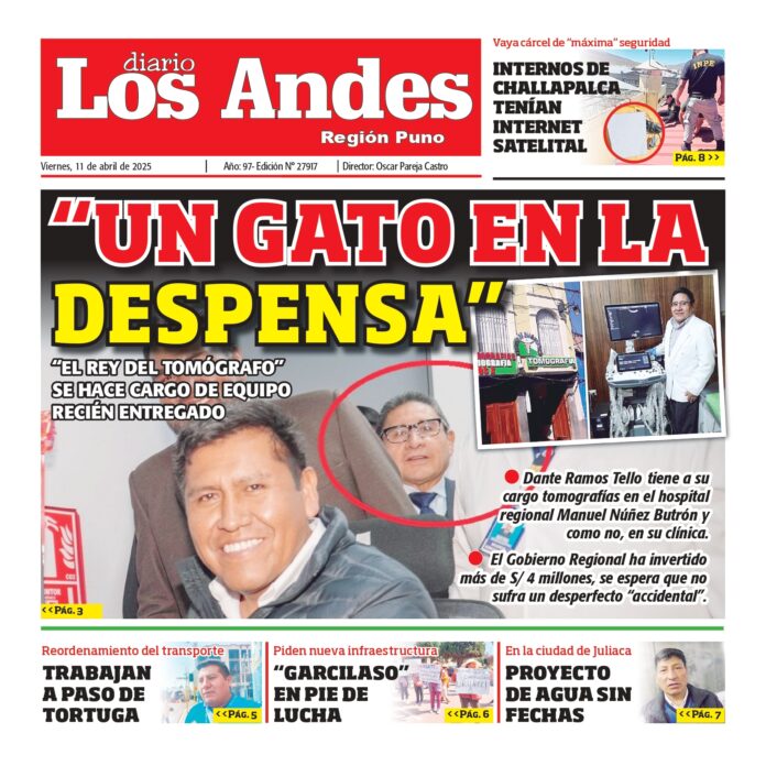 Por: Diario los Andes Fecha: abril 11, 2025 DIARIO DIGITAL PUNO: Diario los Andes 11/04/2025 Vistas: 38 TagsDiario DigitalDiario Los AndesPuno Artículo anteriorAREQUIPA: Diario los Andes 11/04/2025Artículo siguienteAREQUIPA: Diario los Andes 12/04/2025 Diario los Andes Compartir post: FacebookTwitterPinterestWhatsApp Suscríbete Quiero entrar He leído y acepto la Política de Privacidad. Populares DIARIO LOS ANDES PUNO: 15/04/2026 DIARIO LOS ANDES AREQUIPA: 15/04/2026 Crean la Universidad Nacional Tecnológica Intercultural de Pomata Puno: Detectan conexiones clandestinas de aguas residuales Puno: Sereno grave tras ser embestido por combi de empresa “Dorado” Más vistosMás vistos DIARIO LOS ANDES PUNO: 15/04/2026 admingeneral - abril 15, 2026 DIARIO LOS ANDES AREQUIPA: 15/04/2026 admingeneral - abril 15, 2026 Crean la Universidad Nacional Tecnológica Intercultural de Pomata admineditor - abril 14, 2026 En el diario oficial El Peruano, se publicó la... Puno: Detectan conexiones clandestinas de aguas residuales admineditor - abril 14, 2026 La comuna provincial de Puno en coordinación con EMSA...