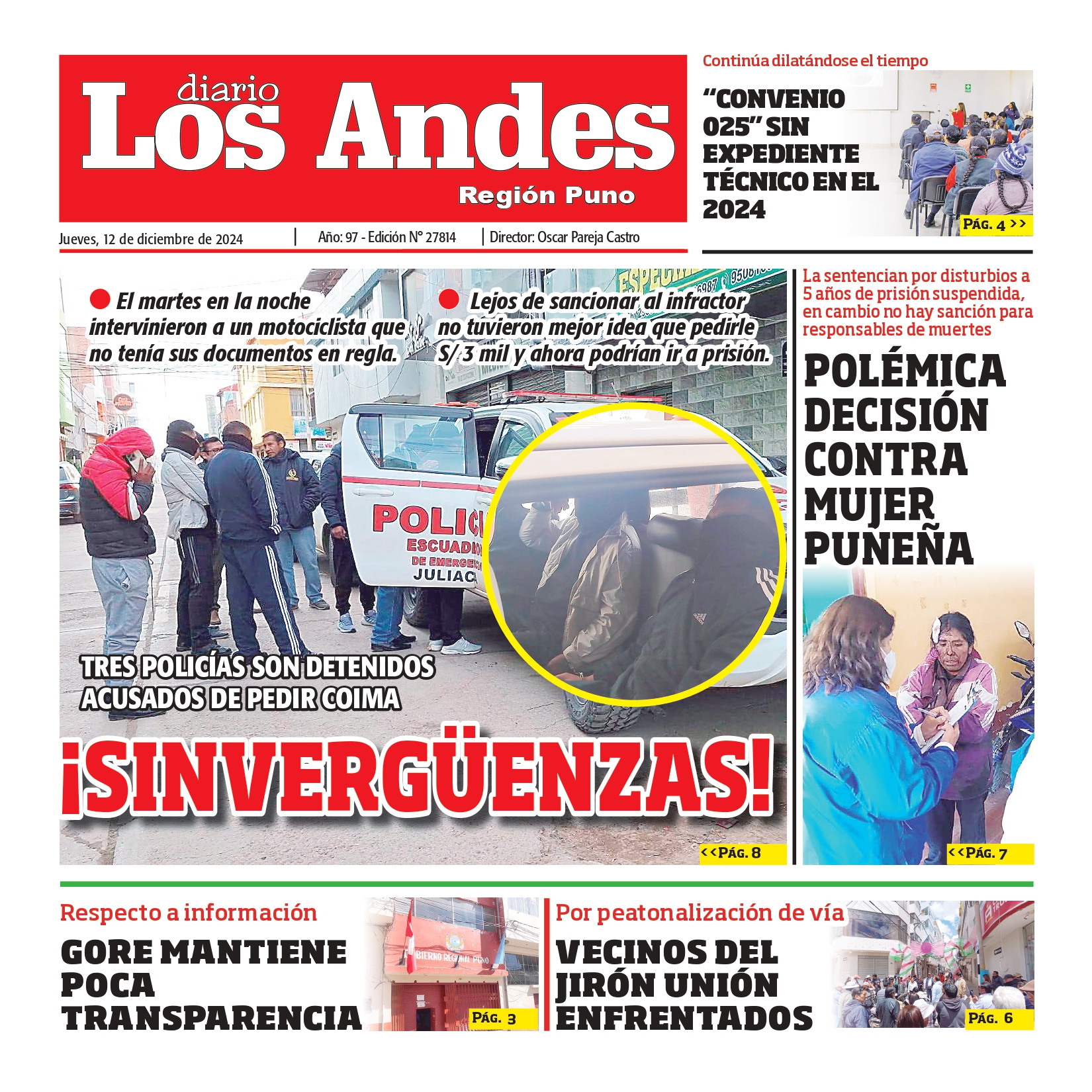 PUNO: Diario los Andes 12/12/2024 Autor de la entrada Por Diario los Andes Fecha de publicación diciembre 12, 2024 Categorías En DIARIO VIRTUAL Etiquetas Diario Digital, Diario Los Andes, Puno