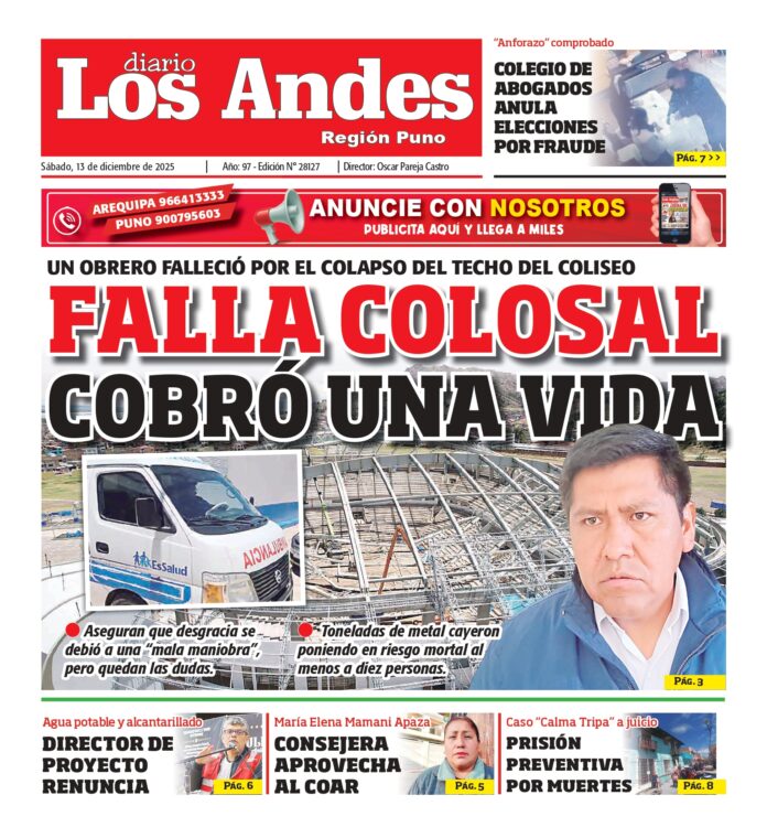 Por: Diario los Andes Fecha: diciembre 13, 2025 DIARIO DIGITAL PUNO: Diario Los Andes 13/12/2025 Vistas: 153 TagsDiario DigitalDiario Los AndesPuno Artículo anteriorAREQUIPA: Diario Los Andes 13/12/2025Artículo siguienteAREQUIPA: Diario Los Andes 14/12/2025 Diario los Andes Compartir post: FacebookTwitterPinterestWhatsApp Suscríbete Quiero entrar He leído y acepto la Política de Privacidad. Populares PUNO: Diario Los Andes 15/01/2026 AREQUIPA: Diario Los Andes 15/01/2026 PUNO: Diario Los Andes 14/01/2026 AREQUIPA: Diario Los Andes 14/01/2026 De las redes sociales al streaming: estas son las tendencias de ocio online en Perú Más vistosMás vistos PUNO: Diario Los Andes 15/01/2026 Diario los Andes - enero 15, 2026 AREQUIPA: Diario Los Andes 15/01/2026 Diario los Andes - enero 15, 2026 PUNO: Diario Los Andes 14/01/2026 Diario los Andes - enero 14, 2026 AREQUIPA: Diario Los Andes 14/01/2026 Diario los Andes - enero 14, 2026