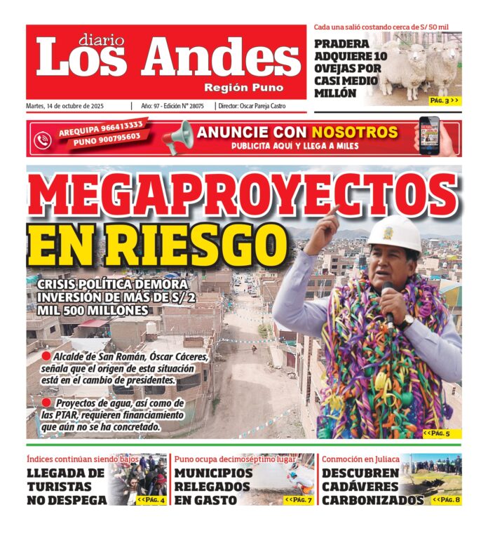 Por: Diario los Andes Fecha: octubre 14, 2025 DIARIO DIGITAL PUNO: Diario Los Andes 14/10/2025 Vistas: 70 TagsDiario DigitalDiario Los AndesPuno Artículo anteriorAREQUIPA: Diario Los Andes 14/10/2025Artículo siguienteAREQUIPA: Diario Los Andes 15/10/2025 Diario los Andes Compartir post: FacebookTwitterPinterestWhatsApp Suscríbete Quiero entrar He leído y acepto la Política de Privacidad. Populares Keiko lidera y le siguen cuatro candidatos Semanario Los Andes 13/04/2026 DIARIO LOS ANDES AREQUIPA: 12/04/2026 DIARIO LOS ANDES PUNO: 12/04/26 Arequipa: Precio del balón supera los S/50 en últimas semanas Más vistosMás vistos Keiko lidera y le siguen cuatro candidatos admineditor - abril 13, 2026 A boca de urna de encuestadora Datum, Fujimori habría... Semanario Los Andes 13/04/2026 admingeneral - abril 12, 2026 DIARIO LOS ANDES AREQUIPA: 12/04/2026 admingeneral - abril 11, 2026 DIARIO LOS ANDES PUNO: 12/04/26 admingeneral - abril 11, 2026