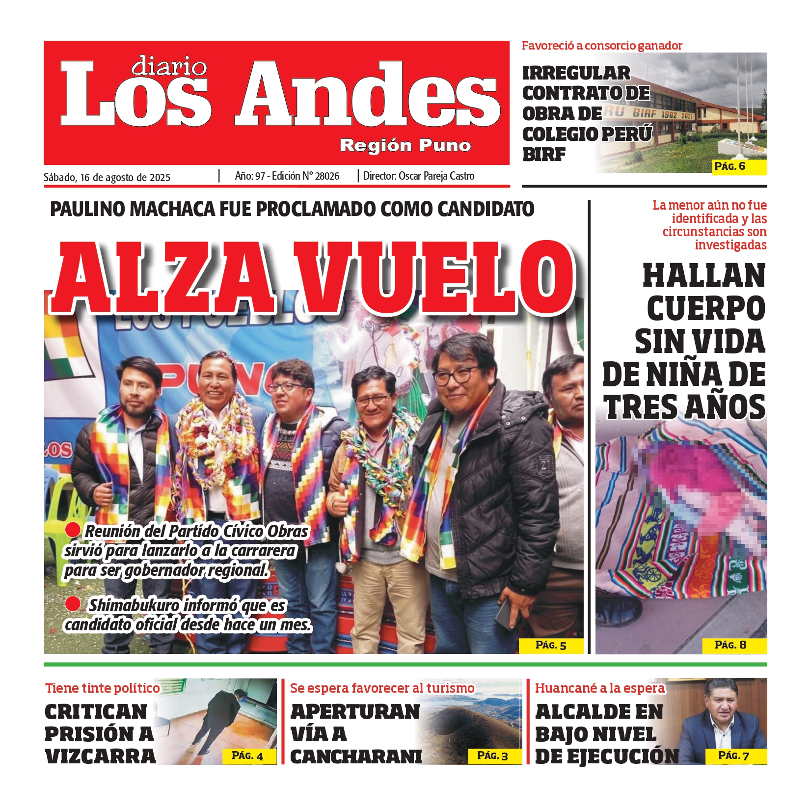 PUNO: Diario Los Andes 16/08/2025 Autor de la entrada Por Diario los Andes Fecha de publicación agosto 16, 2025 Categorías En DIARIO VIRTUAL Etiquetas Diario Digital, Diario Los Andes, Puno