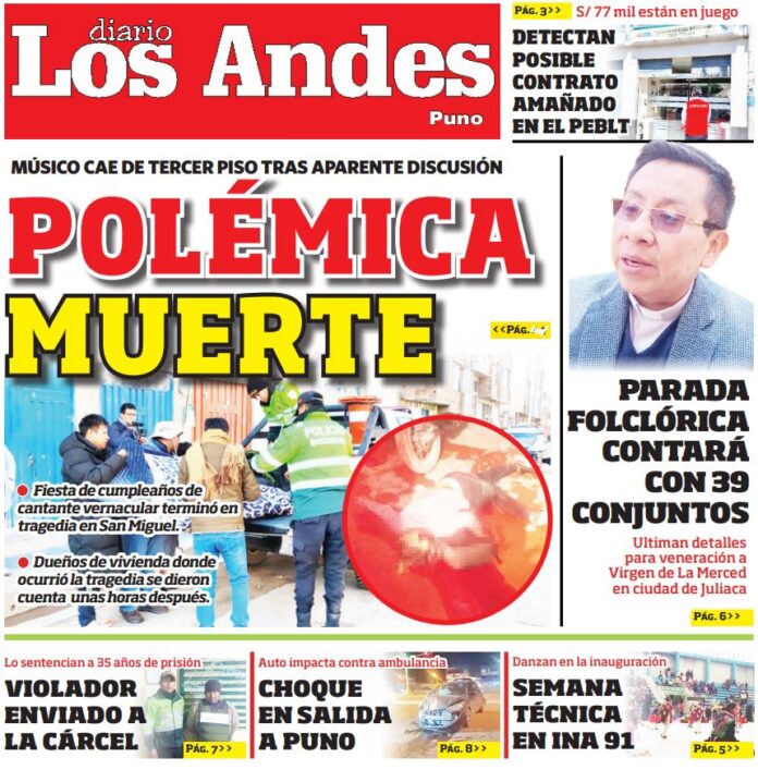 Por: Diario los Andes Fecha: septiembre 18, 2024 DIARIO DIGITAL PUNO: Diario Los Andes 18/09/2024 Vistas: 19 Artículo anteriorAREQUIPA: Diario Los Andes 18/09/2024Artículo siguienteAREQUIPA: Diario Los Andes 19/09/2024 Diario los Andes Compartir post: FacebookTwitterPinterestWhatsApp Suscríbete Quiero entrar He leído y acepto la Política de Privacidad. Populares Puno: Actividad de Renovación Popular se llevó a cabo con poca gente y casi a ocultas DIARIO LOS ANDES AREQUIPA: 17/03/2026 DIARIO LOS ANDES PUNO: 17/03/2026 Rescatan a cría de oso andino que vivía en cautiverio Postulante a la UNA Puno fue intervenido con audífono espía Más vistosMás vistos Puno: Actividad de Renovación Popular se llevó a cabo con poca gente y casi a ocultas Diario los Andes - marzo 17, 2026 Redacción: J. Carlos Flores Vargas Absalón Vásquez pasó por Puno... DIARIO LOS ANDES AREQUIPA: 17/03/2026 Diario los Andes - marzo 17, 2026 DIARIO LOS ANDES PUNO: 17/03/2026 Diario los Andes - marzo 17, 2026 Rescatan a cría de oso andino que vivía en cautiverio Diario los Andes - marzo 16, 2026 Redacción: Jessimiel Rosas El Servicio Nacional Forestal y de Fauna...