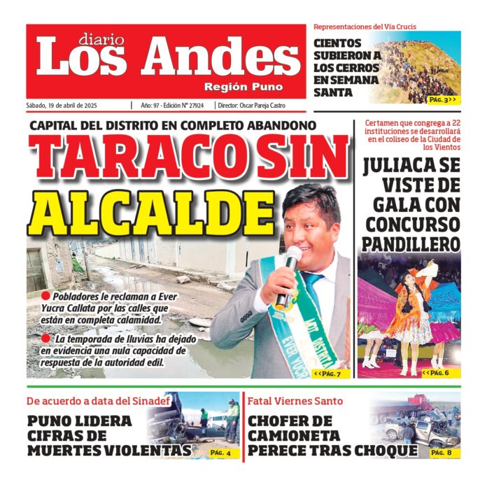 Por: Diario los Andes Fecha: abril 19, 2025 DIARIO DIGITAL PUNO: Diario los Andes 19/04/2025 Vistas: 42 TagsDiario DigitalDiario Los AndesPuno Artículo anteriorAREQUIPA: Diario los Andes 19/04/2025Artículo siguientePUNO: Diario los Andes 20/04/2025 Diario los Andes Compartir post: FacebookTwitterPinterestWhatsApp Suscríbete Quiero entrar He leído y acepto la Política de Privacidad. Populares Semanario Los Andes 13/04/2026 DIARIO LOS ANDES AREQUIPA: 12/04/2026 DIARIO LOS ANDES PUNO: 12/04/26 Arequipa: Precio del balón supera los S/50 en últimas semanas Arequipa: Detienen a adulto mayor acusado de tocamientos indebidos a menor Más vistosMás vistos Semanario Los Andes 13/04/2026 admingeneral - abril 12, 2026 DIARIO LOS ANDES AREQUIPA: 12/04/2026 admingeneral - abril 11, 2026 DIARIO LOS ANDES PUNO: 12/04/26 admingeneral - abril 11, 2026 Arequipa: Precio del balón supera los S/50 en últimas semanas admineditor - abril 11, 2026 Redacción: Jessimiel Rosas En el distrito de Cayma, el precio...